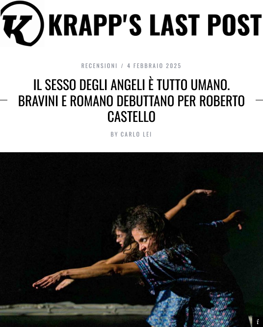 Continua a leggere la recensione integrale di Carlo Lei alla pagina: https://www.klpteatro.it/il-sesso-degli-angeli-roberto-castello-recensione