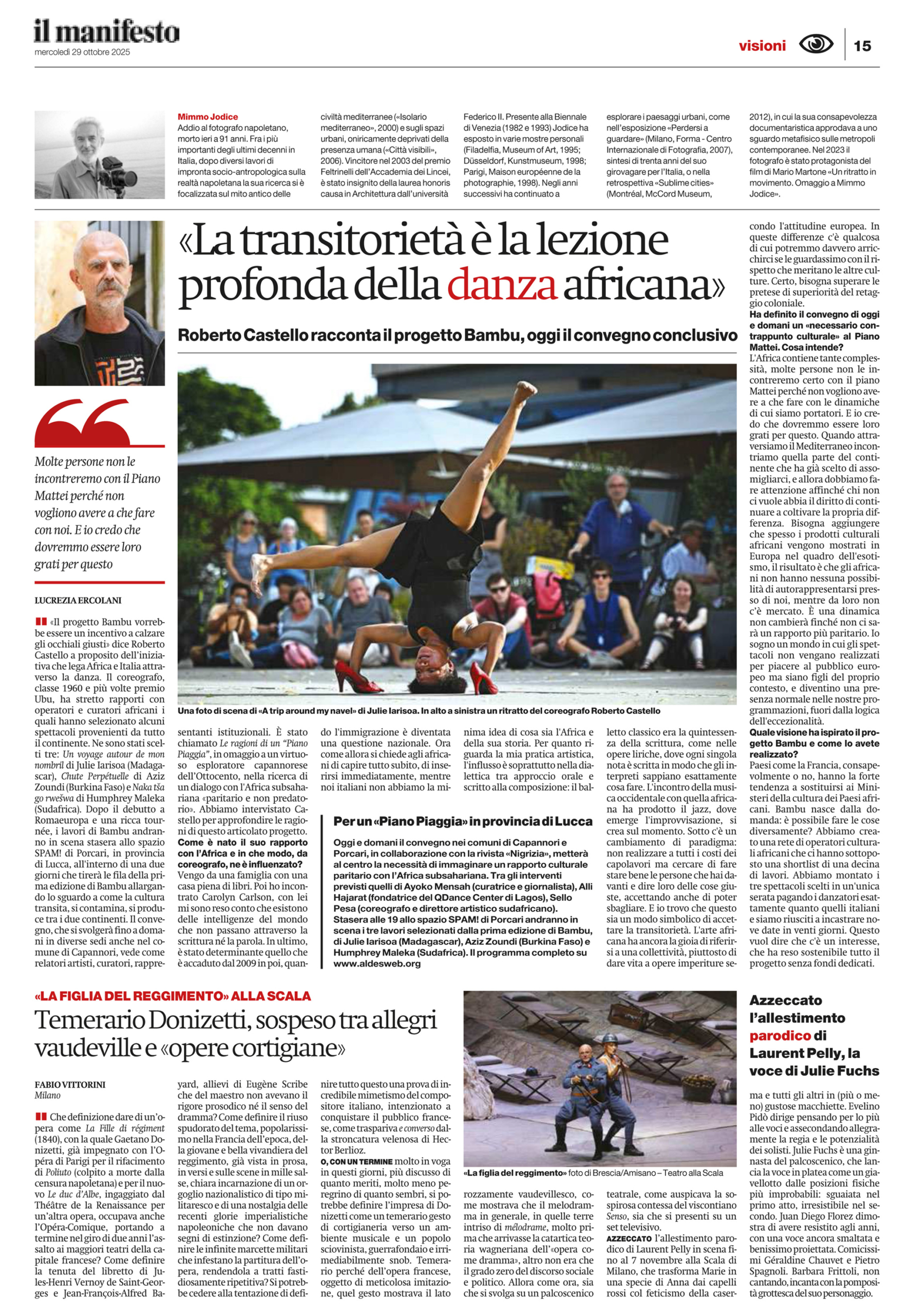 Parte il 7 ottobre 2025 da Roma la tournée di BAMBU, progetto culturale non profit nato per costruire un ponte culturale tra Italia e Africa, attraverso la presentazione di spettacoli di danza e teatro contemporanei realizzati da artisti africani.